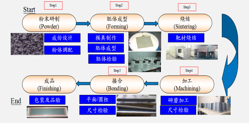 优势:全制程无污染,不排废气及废水,研创公司制程方式,不受尺寸、面积及形状的限制,弹性较大,适合各种新型粉末冶金靶材的制造。